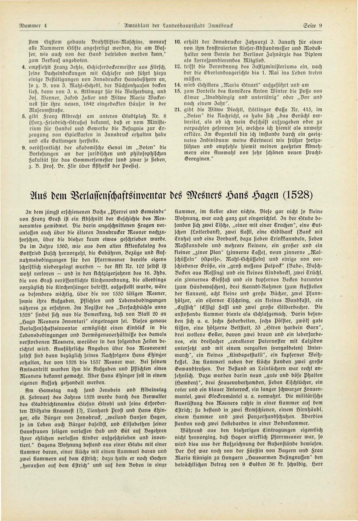 ger, alle Aürgor von Innsbruck, „weilend Hansen Hagen,