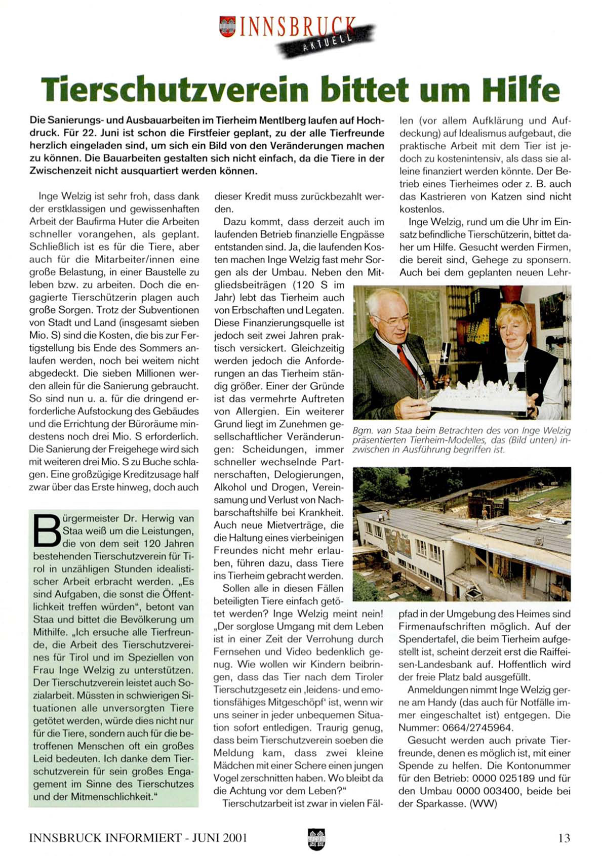 Mithilfe. „Ich ersuche alle Tierfreunde, die Arbeit des Tierschutzvereines für Tirol und im Speziellen von