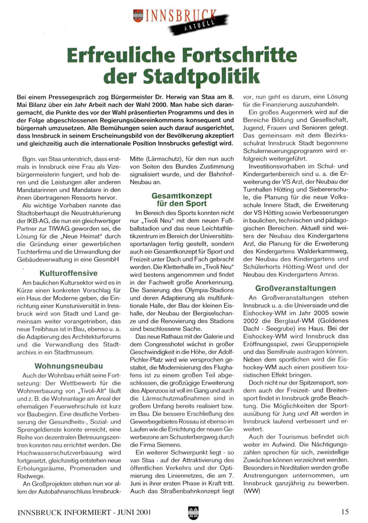 Mai Bilanz über ein Jahr Arbeit nach der Wahl 2000. Man habe sich darangemacht, die Punkte des vor der Wahl präsentierten Programms und des in