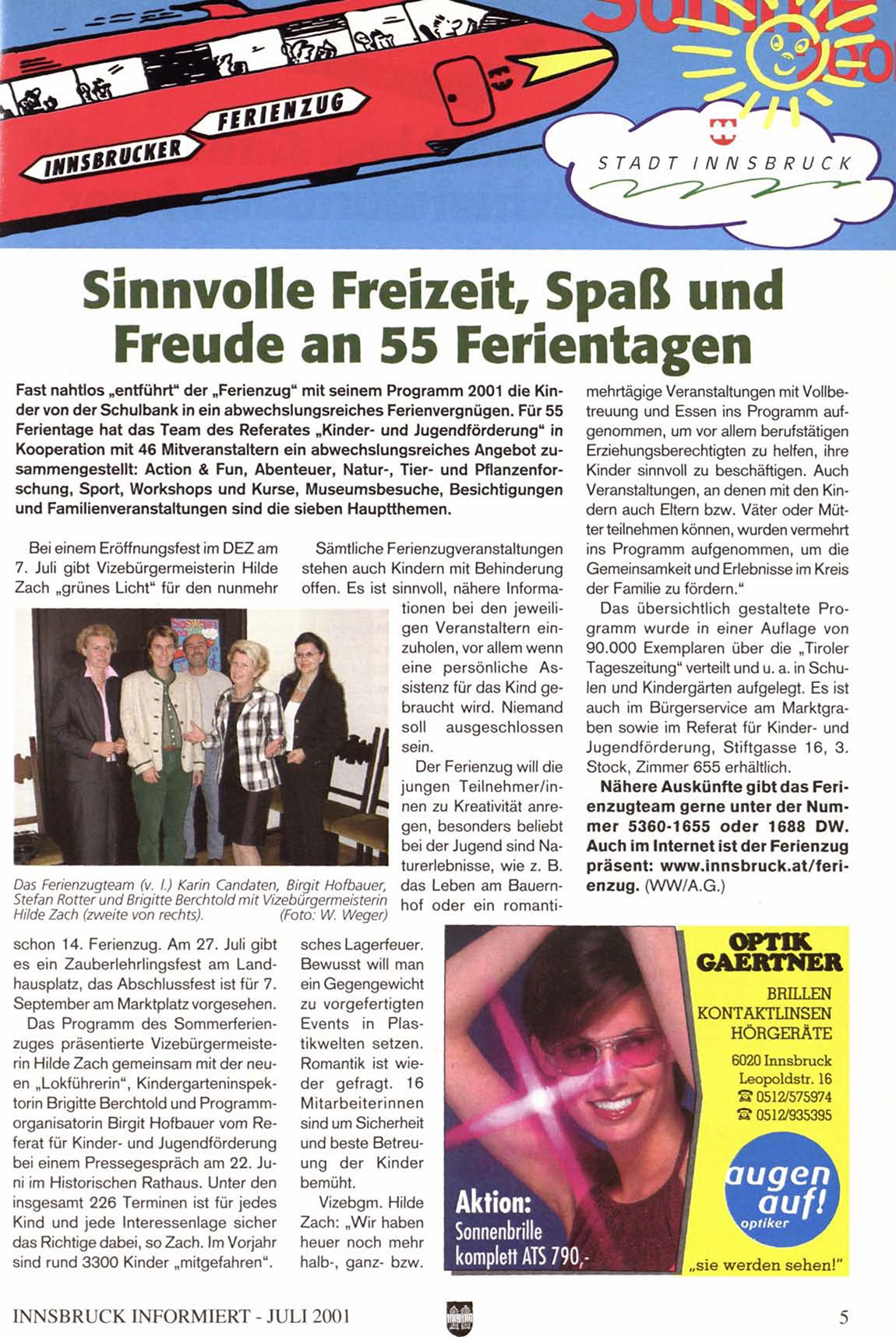 Fast nahtlos „entführt" der „Ferienzug" mit seinem Programm 2001 die Kinder von der Schulbank in ein abwechslungsreiches Ferienvergnügen. Für 55