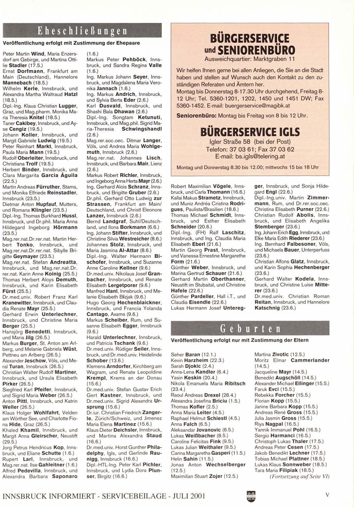 INNSBRUCK INFORMIERT - SERVICEBEILAGE - JULI 2001