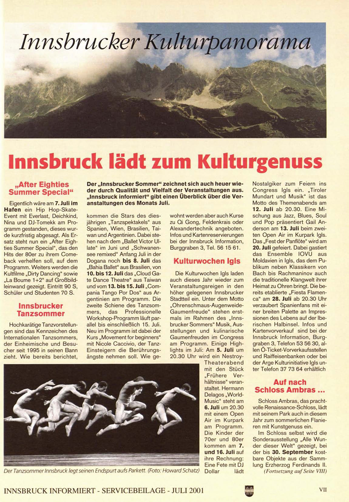 I N N S B R U C K INFORMIERT - S E R V I C E B E I L A G E - JULI 2001