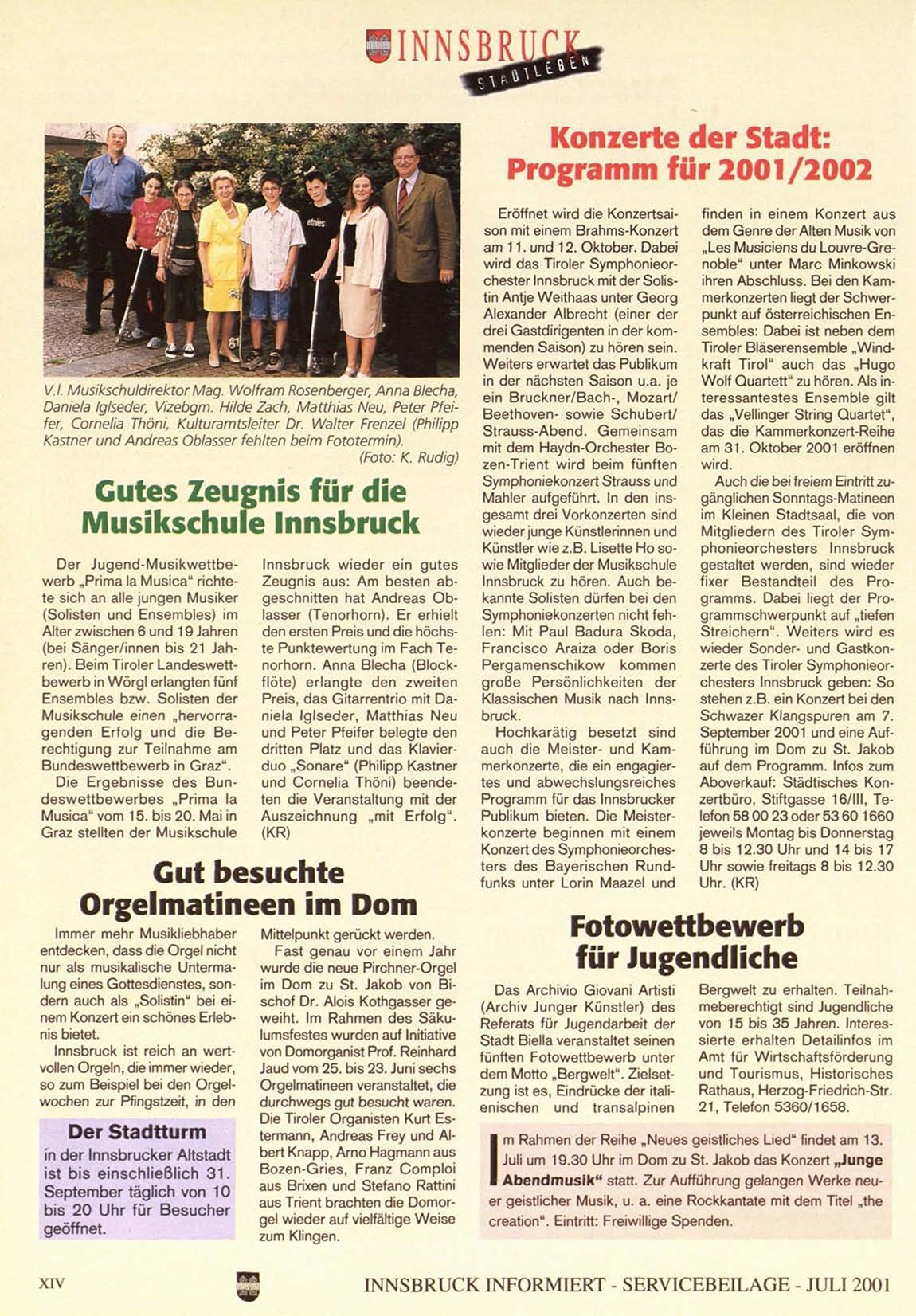 I N N S B R U C K INFORMIERT - S E R V I C E B E I L A G E - JULI 2001