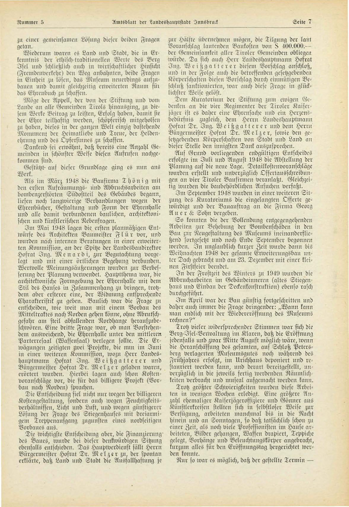 I m September 1948 wnrden in einer weiteren S u znng des Knratorinms die eingelangten Offerte gewürdigt und der Banauftrag an die F i r m a Georg