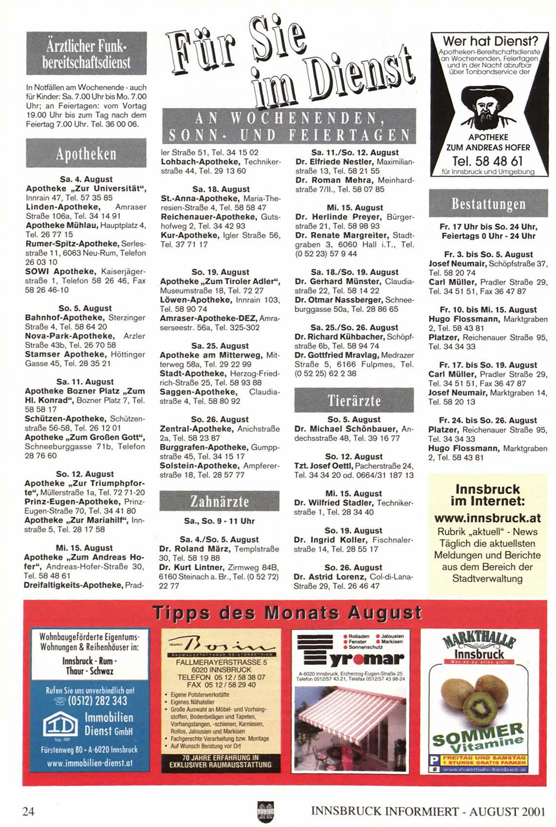 INNSBRUCK INFORMIERT - AUGUST 2001