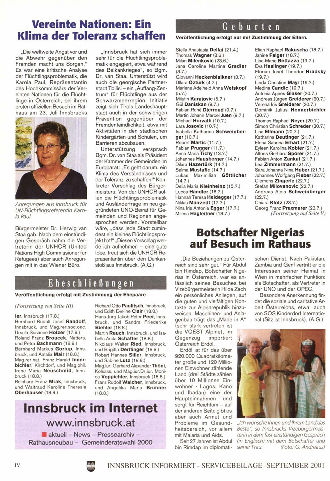 I N N S B R U C K INFORMIERT - SERVICEBEILAGE -SEPTEMBER 2001