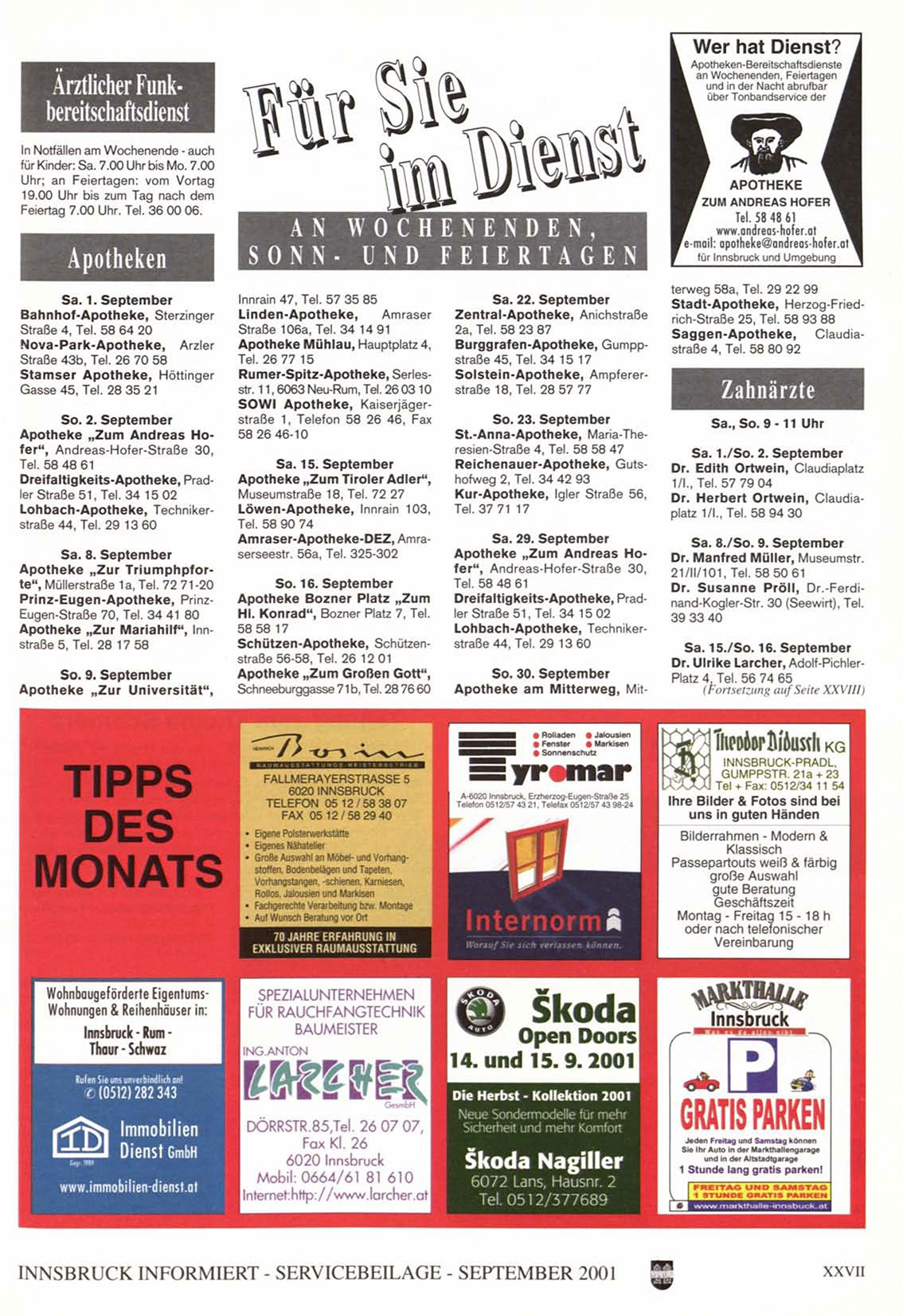 INNSBRUCK INFORMIERT - SERVICEBEILAGE - SEPTEMBER 2001