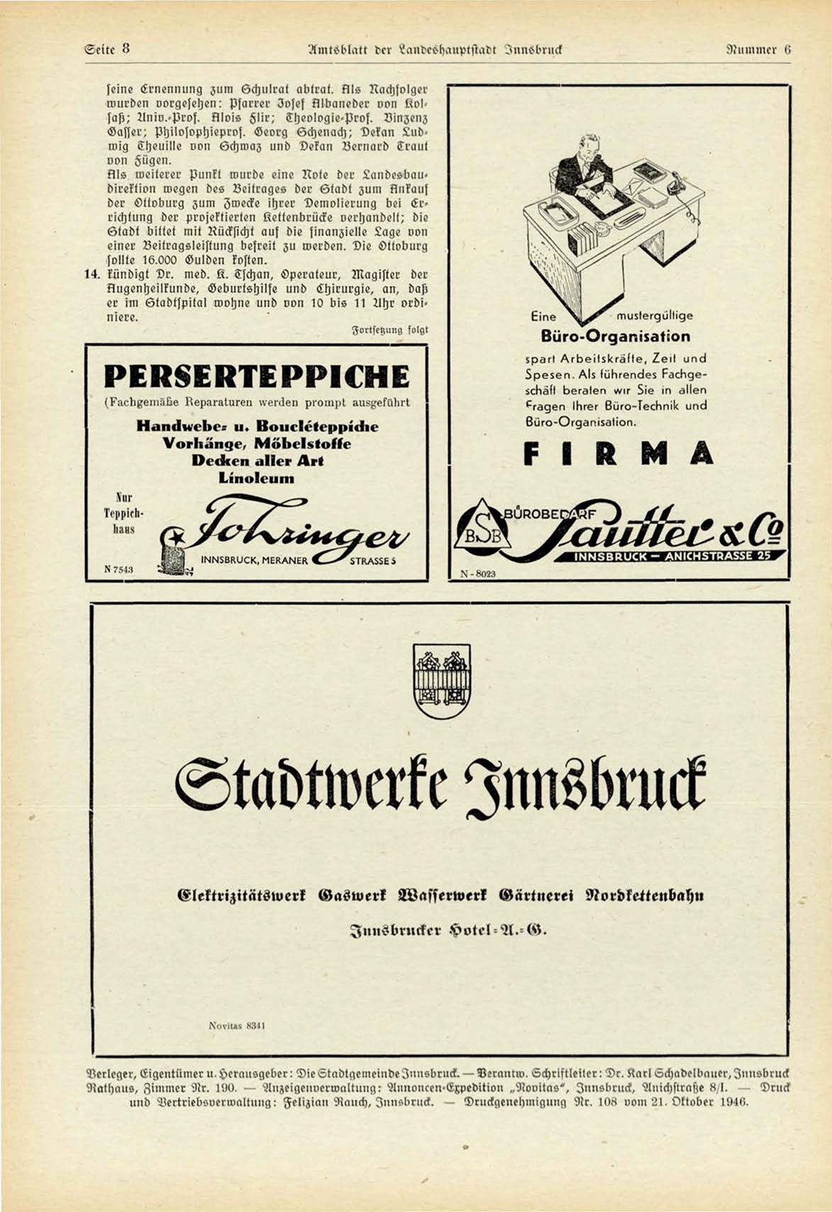 r, Eigentümer u. Herausgeber: Die^tndtqeineindeInnc"briick. — Vernncw. Qchriftleilcr: Dr. .^arl ^chadclbaner, Innsbruck