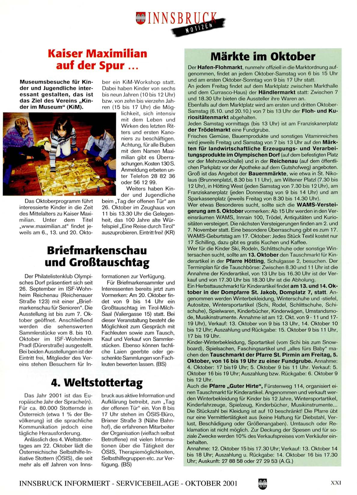 INNSBRUCK INFORMIERT - SERVICEBEILAGE - OKTOBER 2001