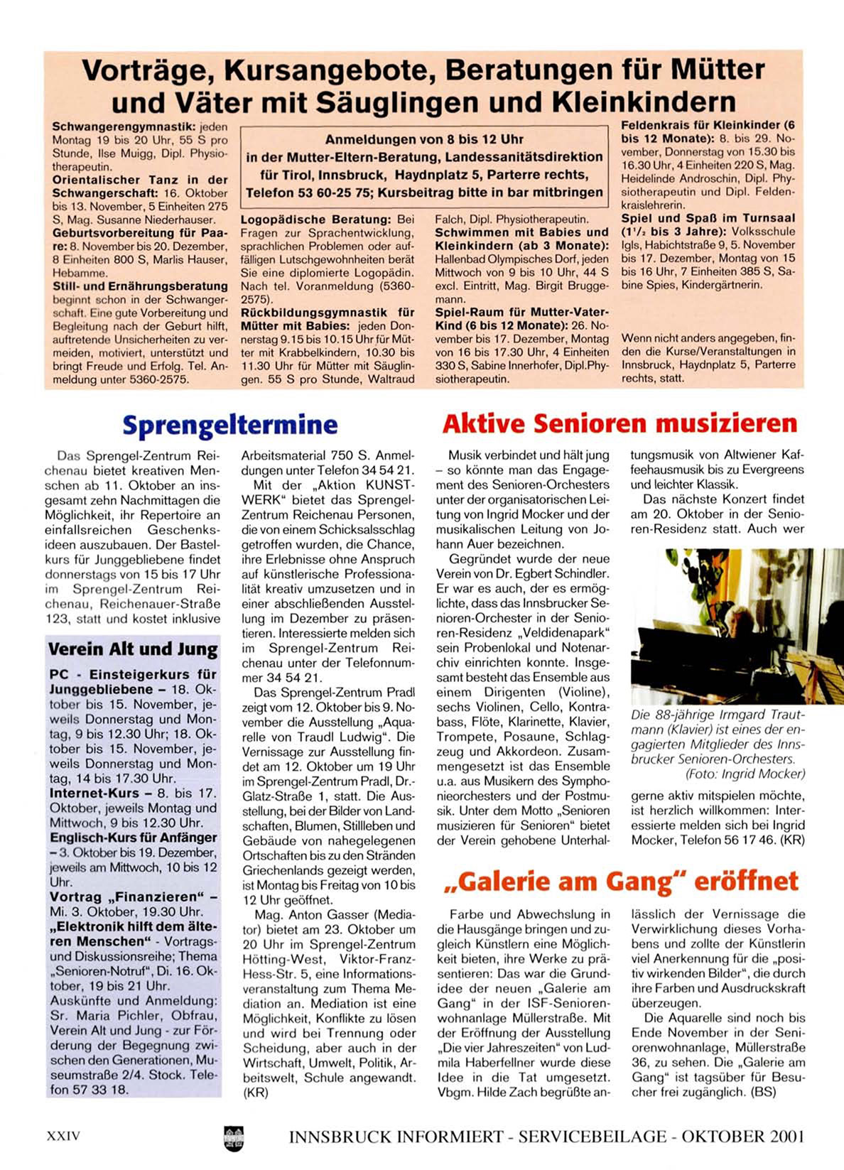 im Sprengel-Zentrum Pradl, Dr.Glatz-Straße 1, statt. Die Ausstellung, bei der Bilder von Landschaften, Blumen, Stillleben und