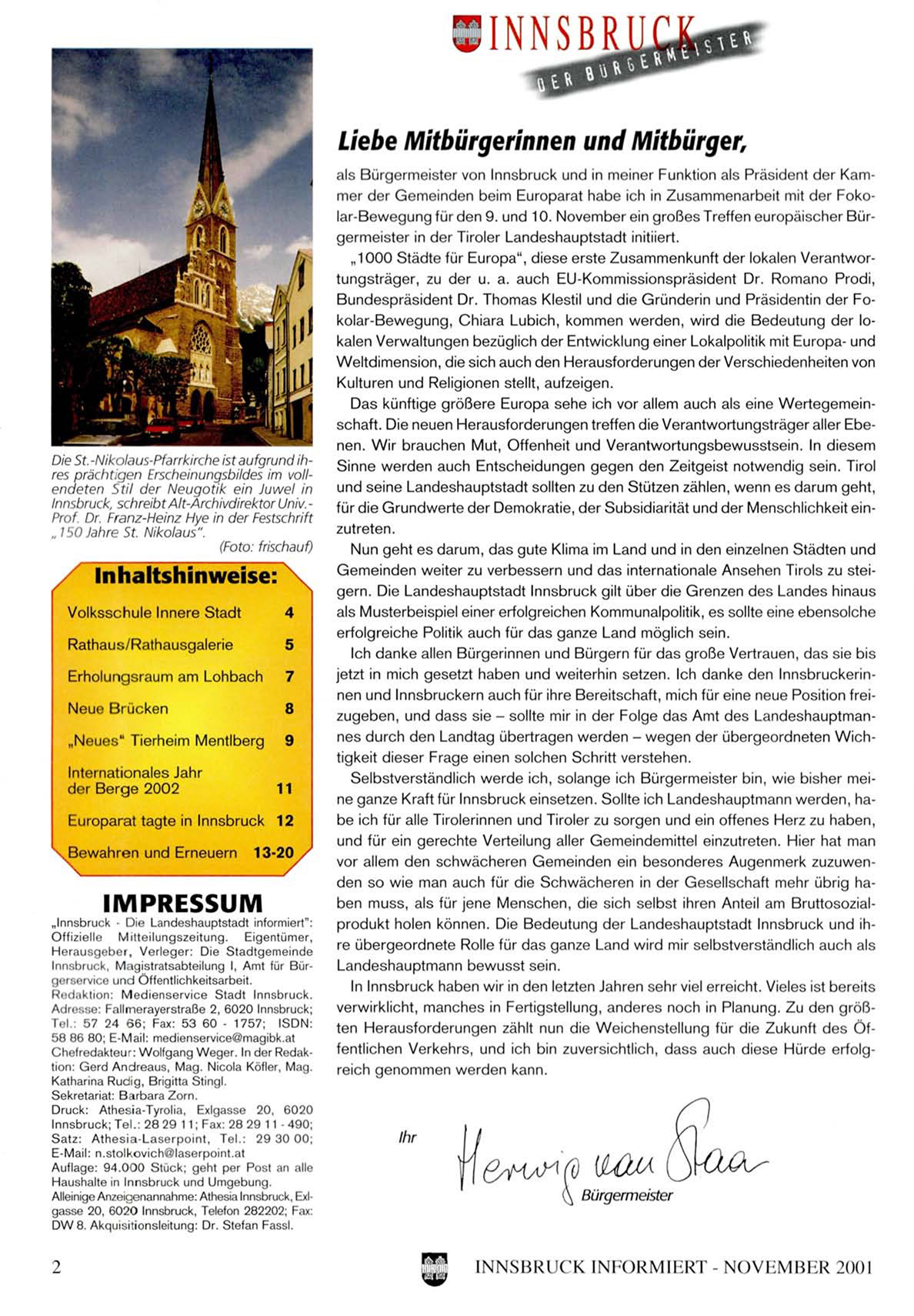 INNSBRUCK I N F O R M I E R T - N O V H M B h R 2001