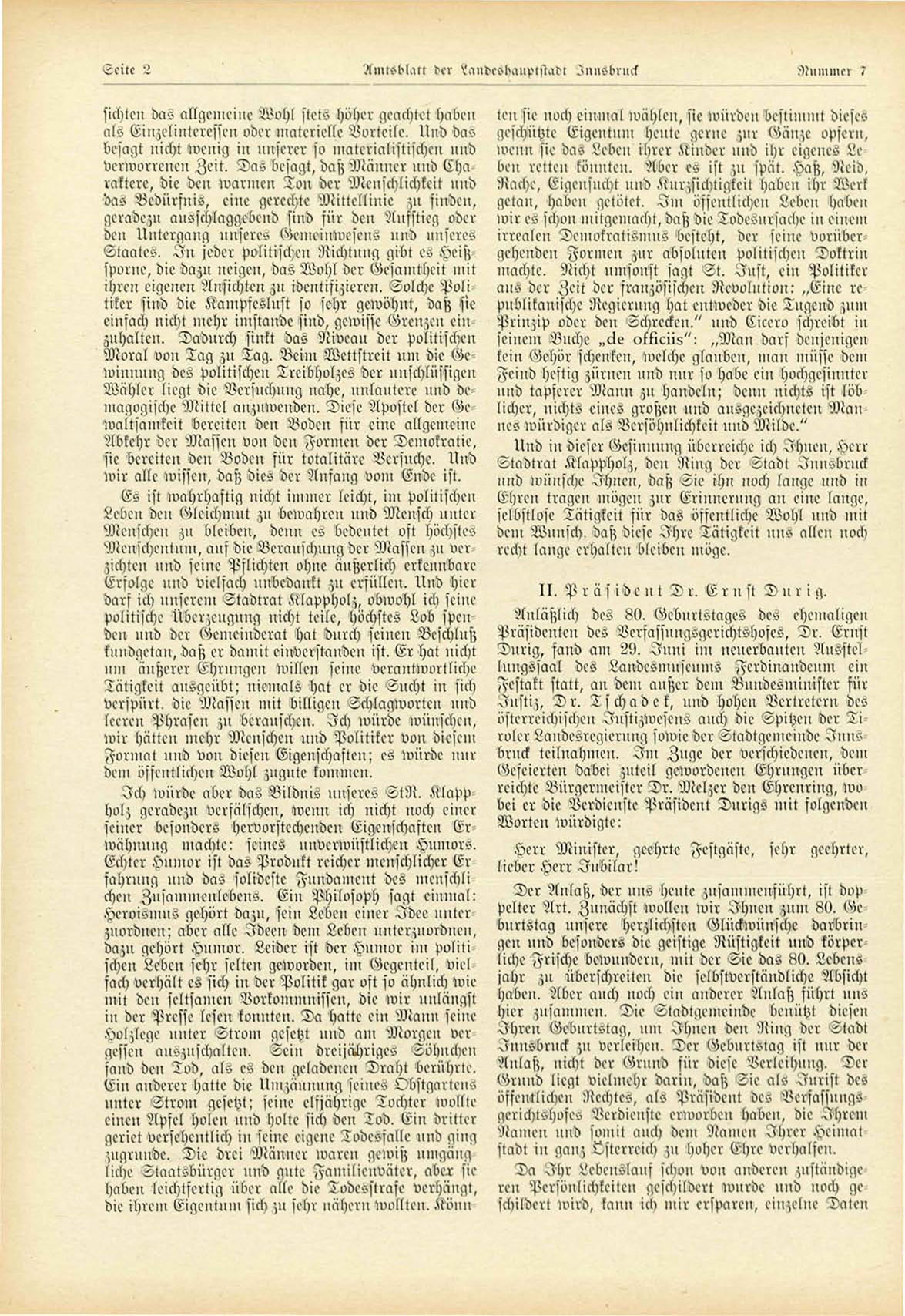 österreichischen Instizwesens anch die Spitzen der T i roler Landesregicrnng sowie der Stadtgemeinde I n n s