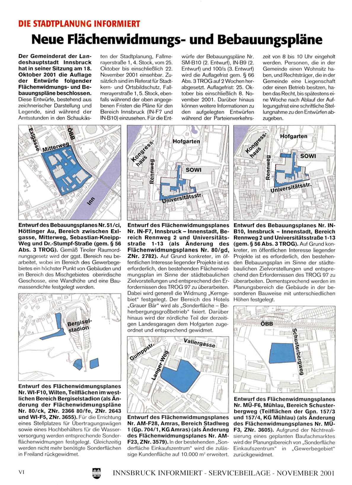 November 2001 einsehbar. Zusätzlich sind im Referat für Stadtkern- und Ortsbildschutz, Fallmerayerstraße 1, 5. Stock, ebenfalls während der oben angegebenen Fristen die Pläne für den