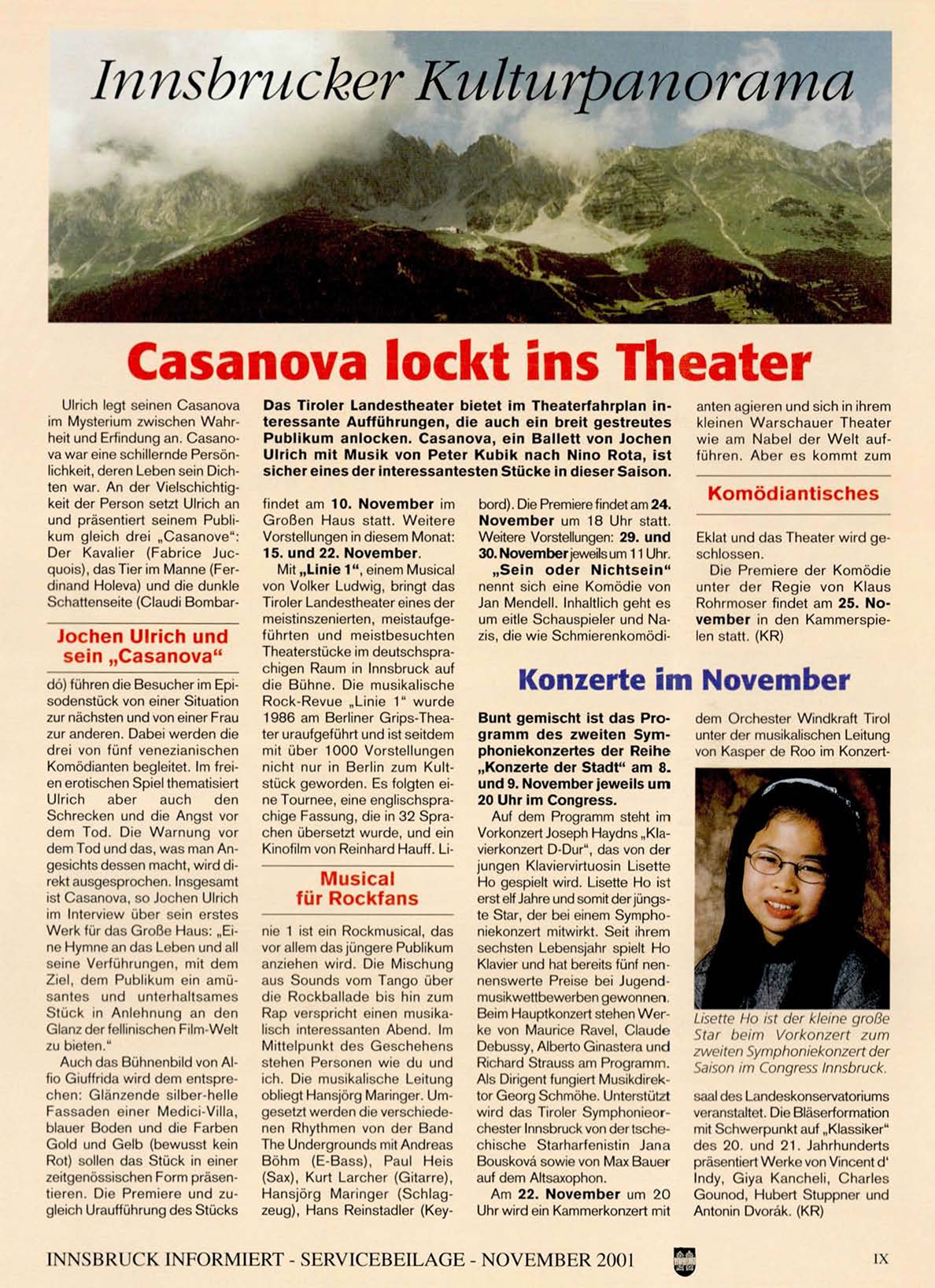 INNSBRUCK INFORMIERT - SERVICEBEILAGE - NOVEMBER 2001