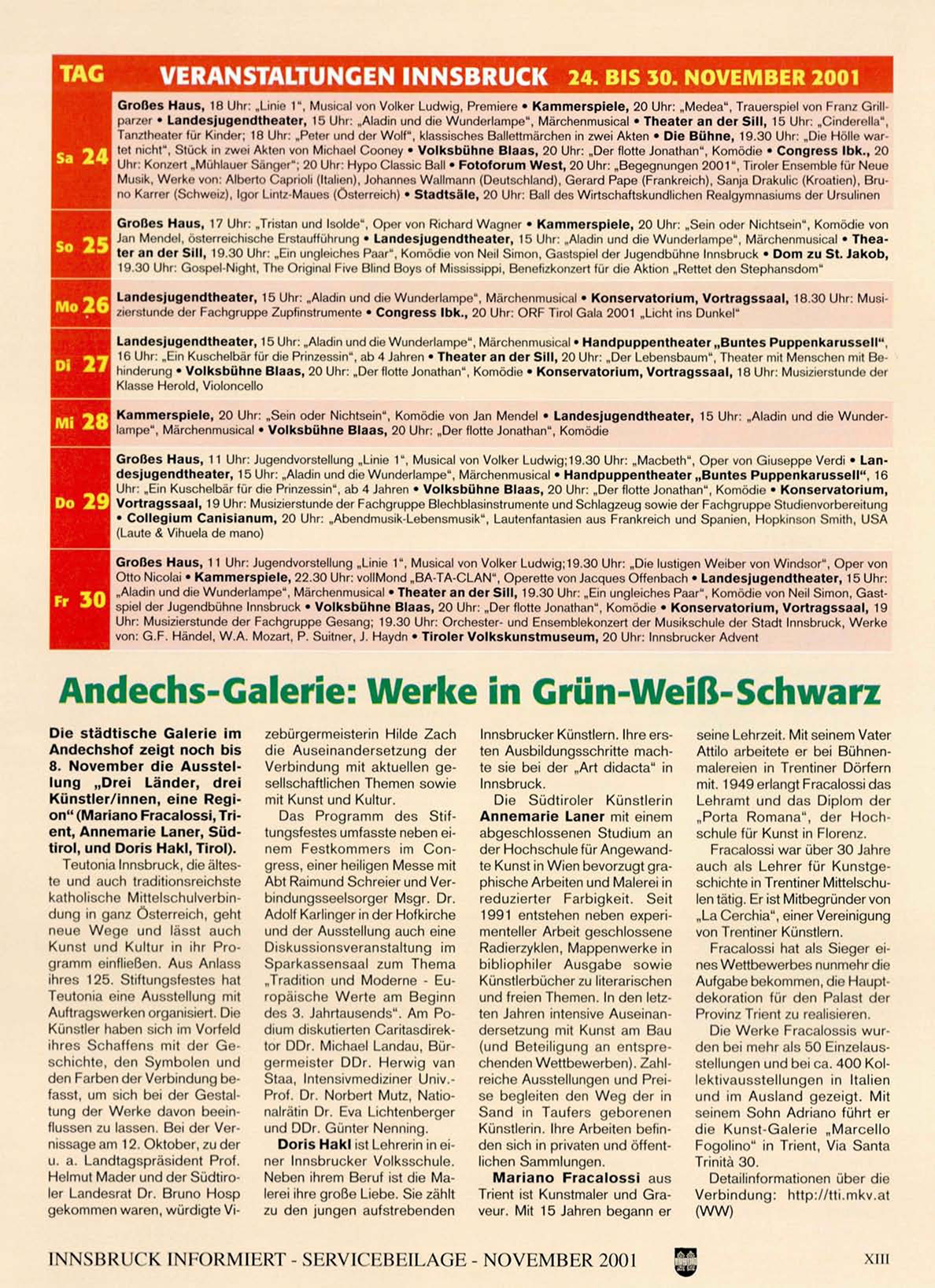 INNSBRUCK INEORMIERT-SHRVICEBEILAGE- NOVEMBER 2001