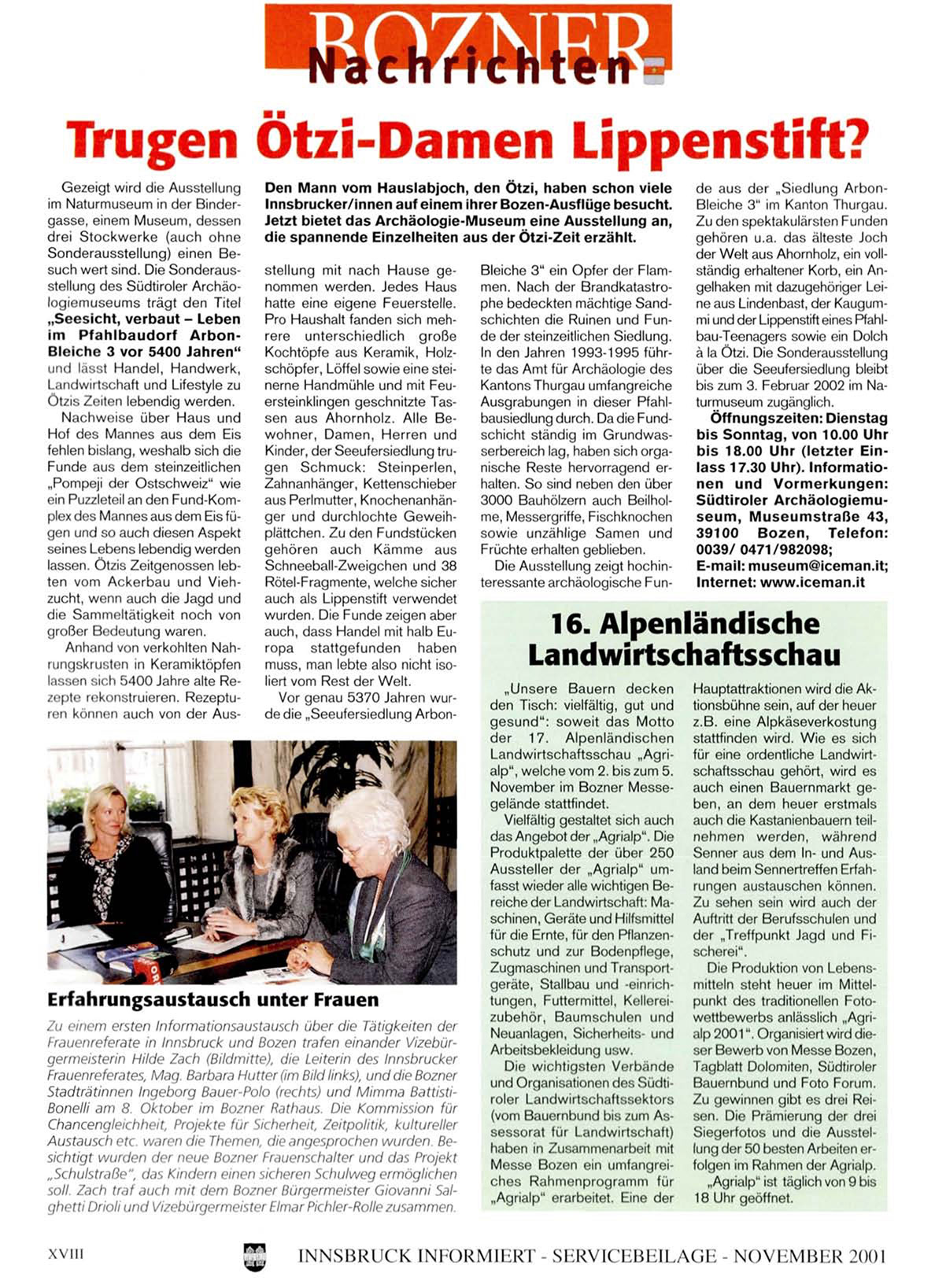 INNSBRUCK INFORMIERT-SERVICEBEILAGE- NOVEMBER 2001