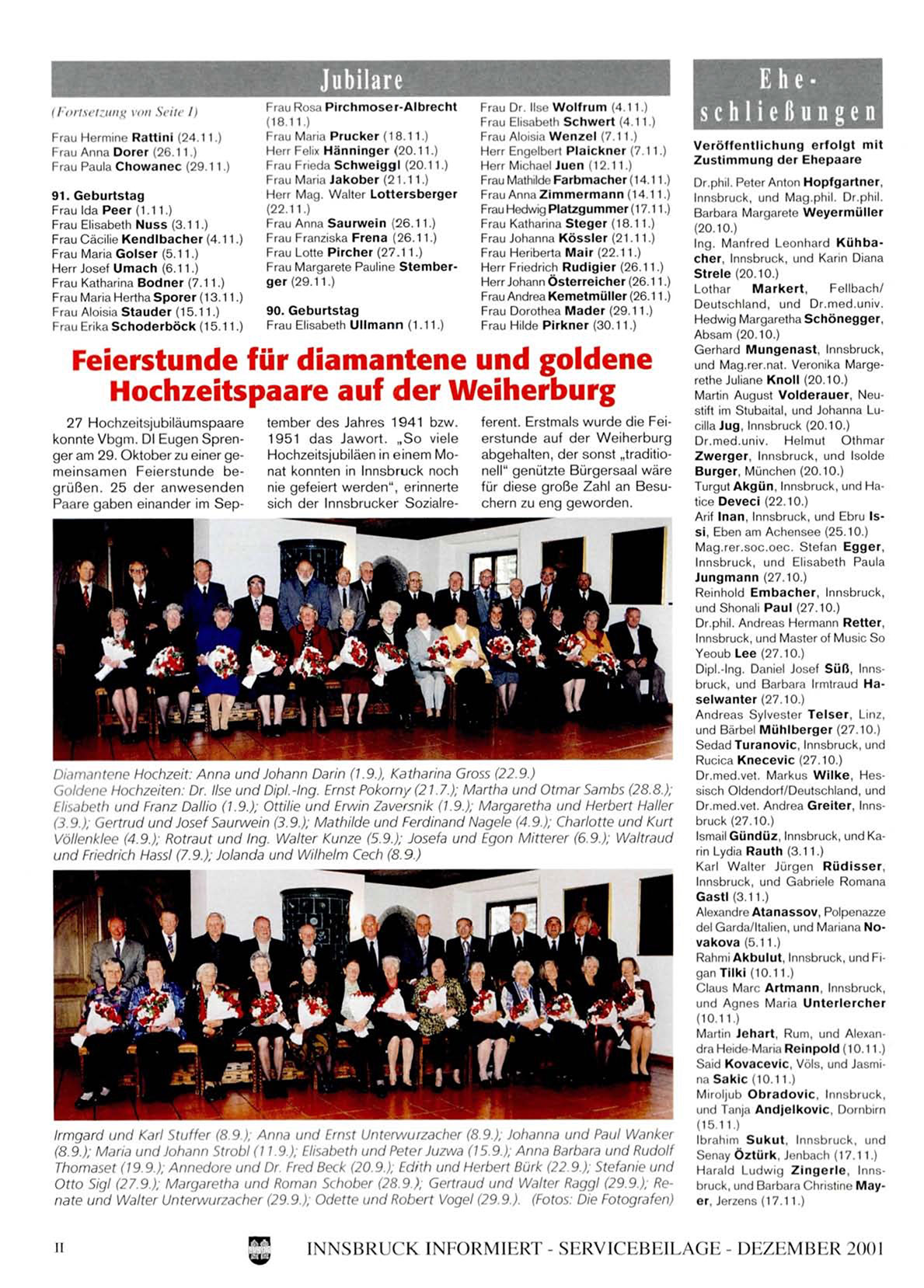 Hochzeitsjubiläen in einem Monat konnten in Innsbruck noch