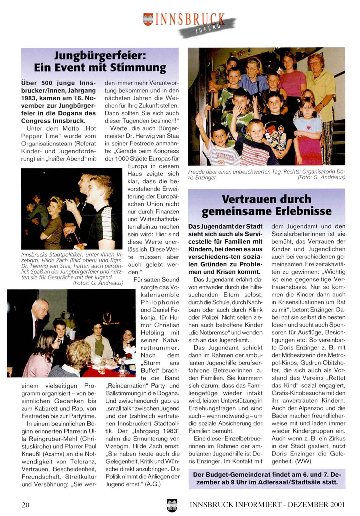 diese Werte unerlässlich. Diese WerInnsbrucks Stadtpolitiker, unter ihnen Vi- te müssen aber