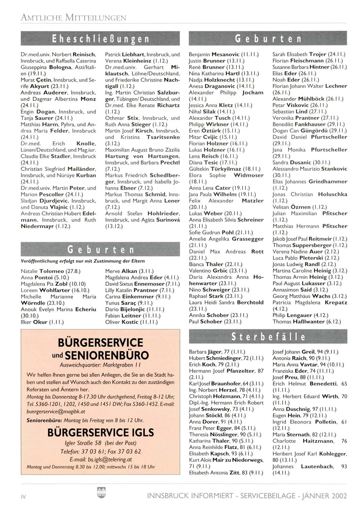 INNSBRUCK INFORMIERT - SERVICEBEILAGE - JÄNNER 2002