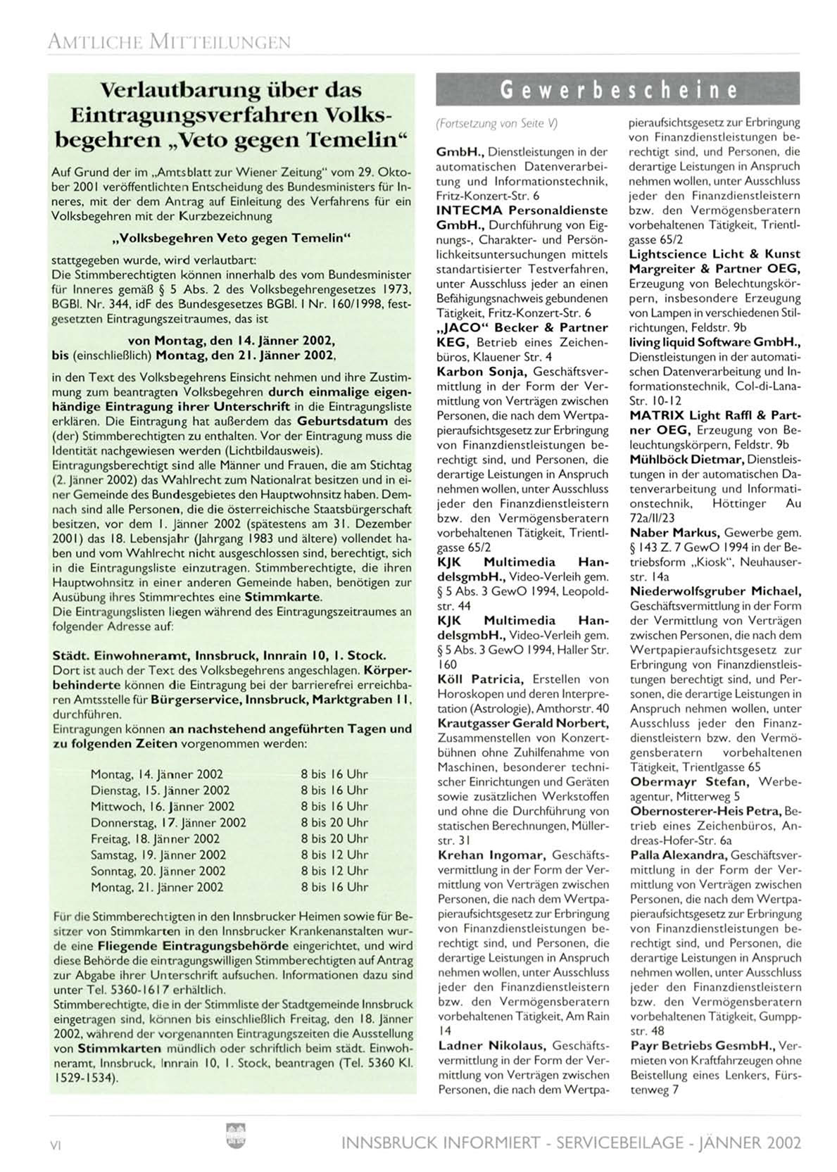INNSBRUCK INFORMIERT - SERVICEBEILAGE - JÄNNER 2002