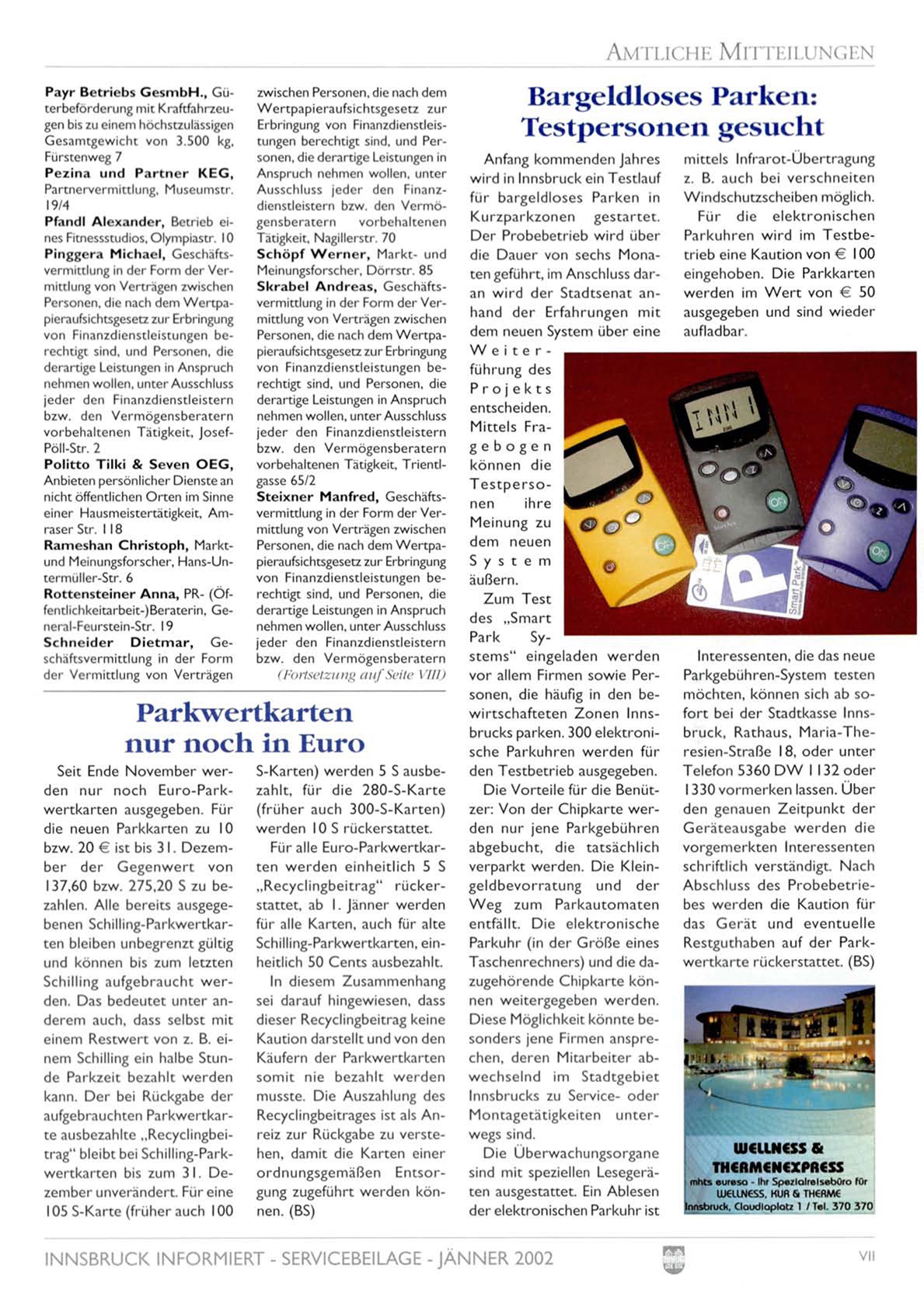 INNSBRUCK INFORMIERT - SERVICEBEILAGE -JÄNNER 2002