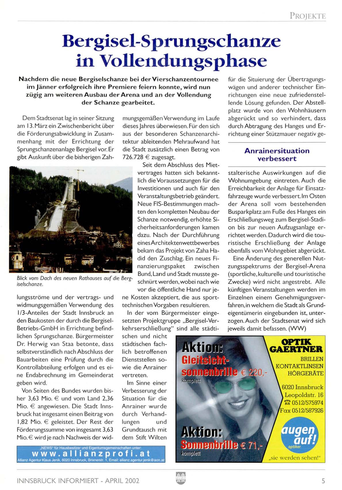 In der vom Bürgermeister eingeden Baukosten der durch die Bergiselsetzten Projektgruppe,,Bergisel-VerBetriebs-GmbH in Errichtung befindkehrserschließung" sind alle städtilichen Sprungschanze. Bürgermeister
