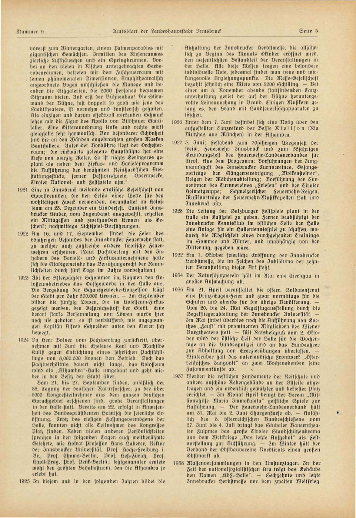 19Z2 Nm 1. Oktober feierliche Eröffnung der Innsbrucks:,"