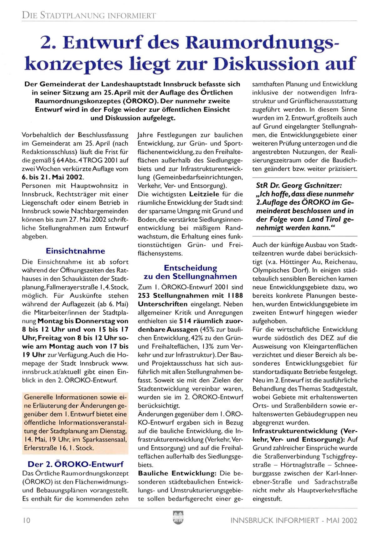 innsbruck.at/aktuell gibt einen Einblick in den 2. ÖROKO-Entwurf.