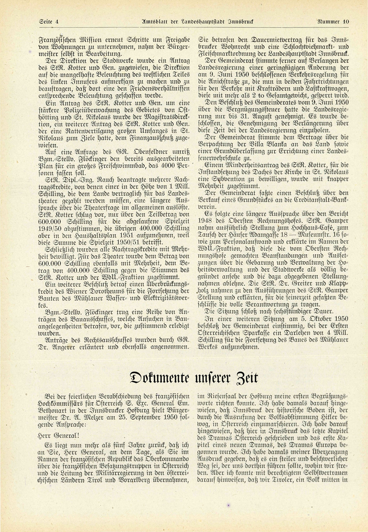 Bgm.-Stellv. Flöckinger trug eine Reihe von AnI n einer weiteren Sitzung am 5. Oktober 1950