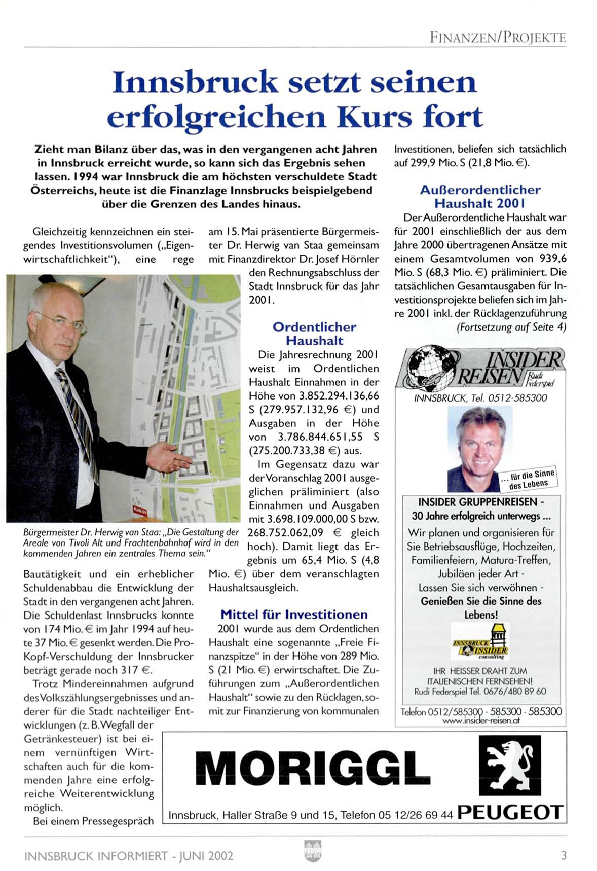 Bürgermeister Dr. Herwig van Staa: „Die Gestaltung der 268.752.062,09 € gleich Wir planen und organisieren für