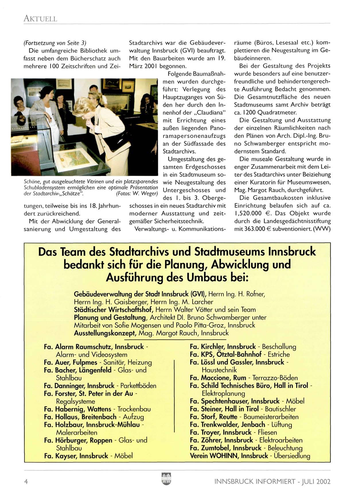 Stadtarchivs war die Gebäudeverwaltung Innsbruck (GVI) beauftragt.