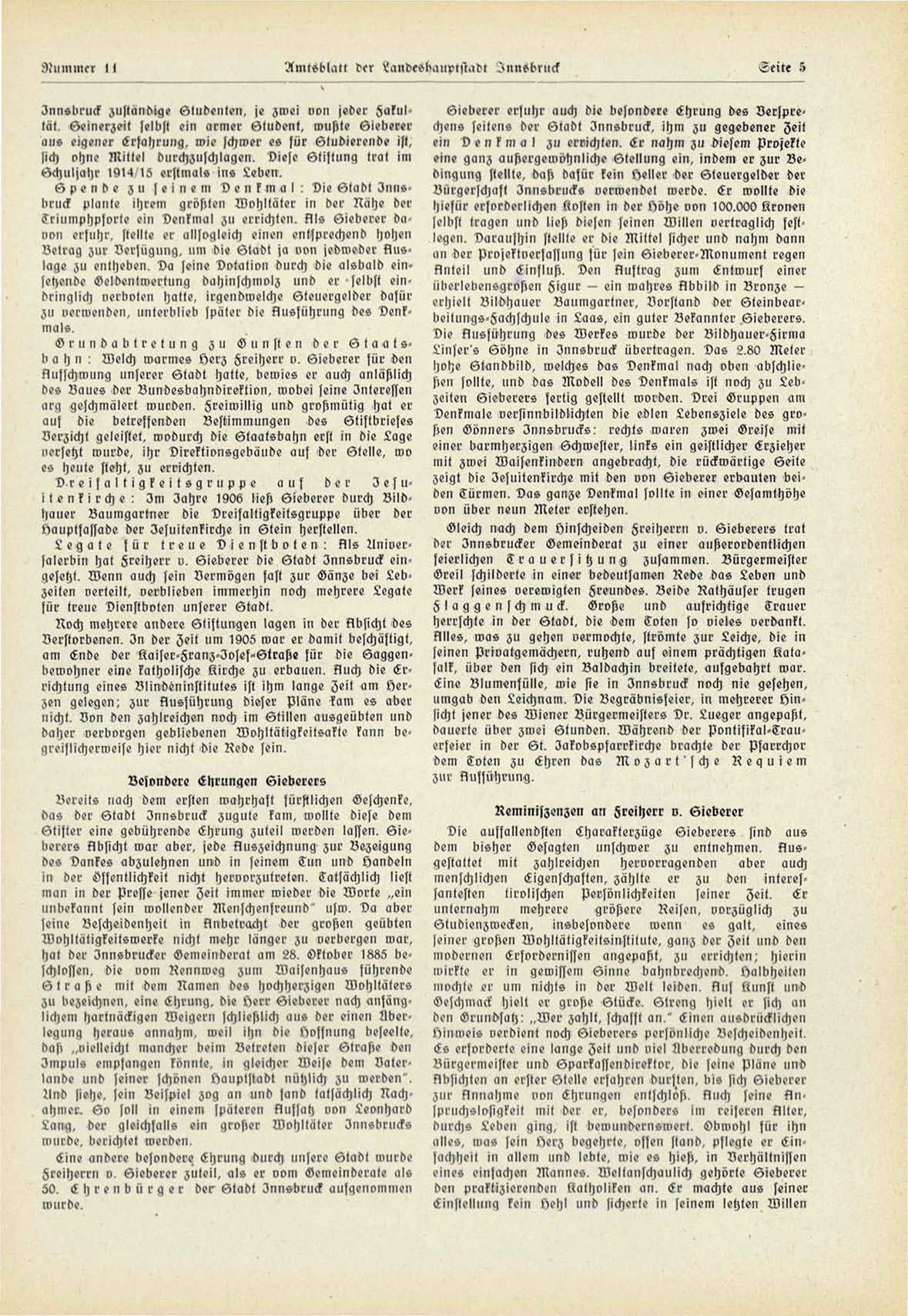 Sieberer erfuhr auch die besondere Ehrung des Versprechens seitens der Stadt Innsbruck, ihm zu gegebener Zeit