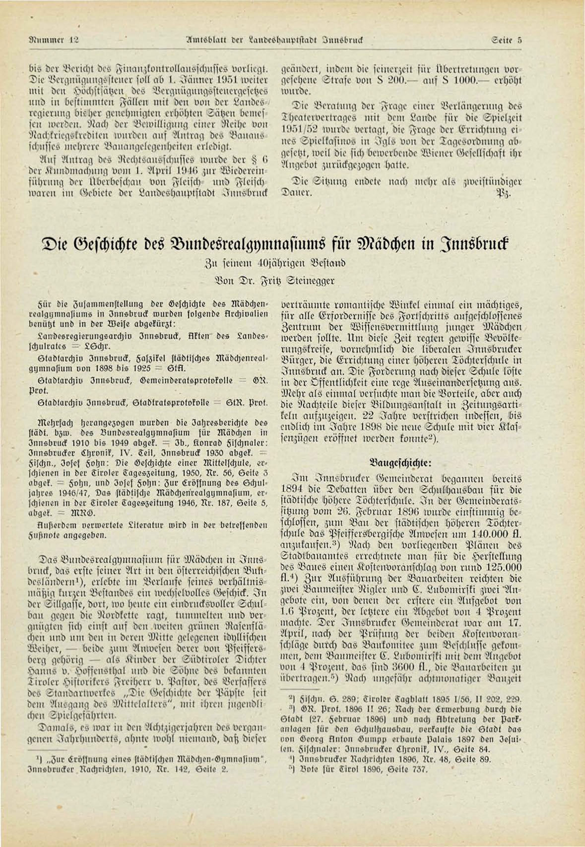 Innsbrucker Llironik, IV. 3eil, Innsbruck 1930 abgek. -fischii., Ioset Kohn: Vie Oeschichte einer Mittelschule, er«