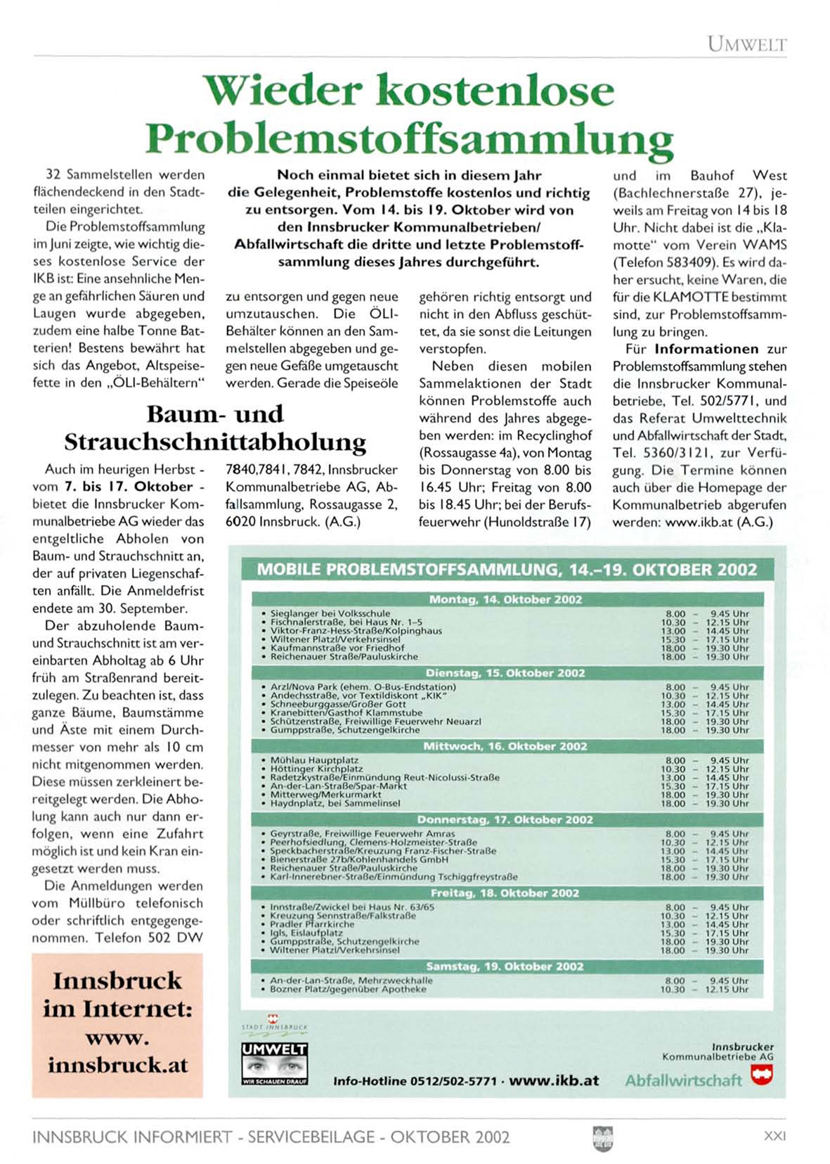 INNSBRUCK INFORMIERT - SERVICEBEILAGE - OKTOBER 2002