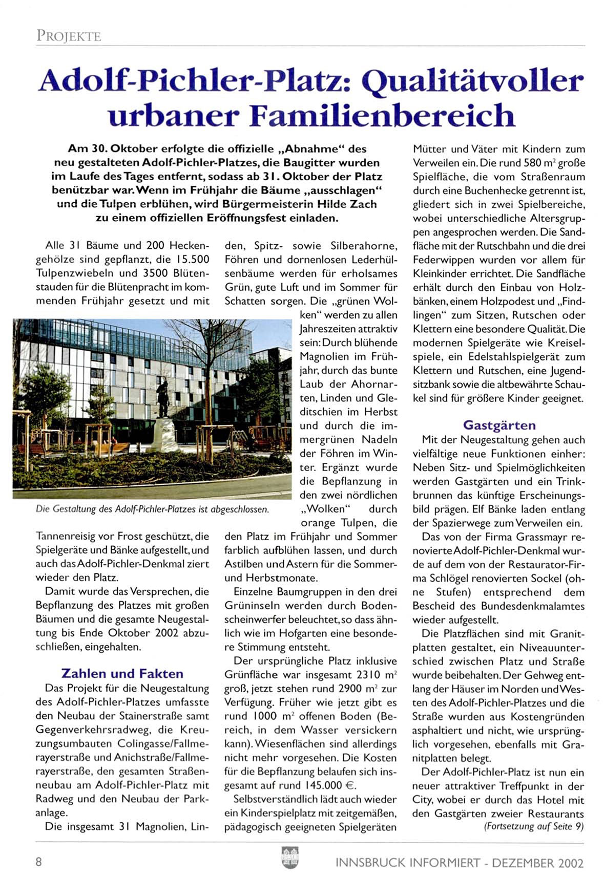 D/r Gestaltung des Adolf-Pichler-Platzes