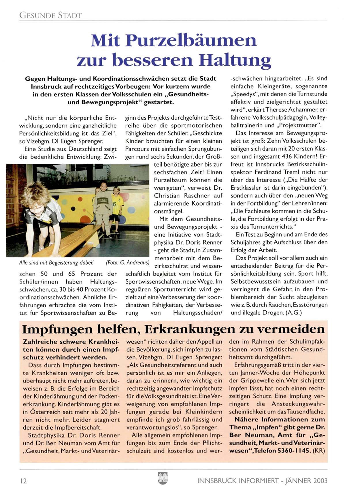 die Bevölkerung, sich impfen zu lassen. Vizebgm. DI Eugen Sprenger: