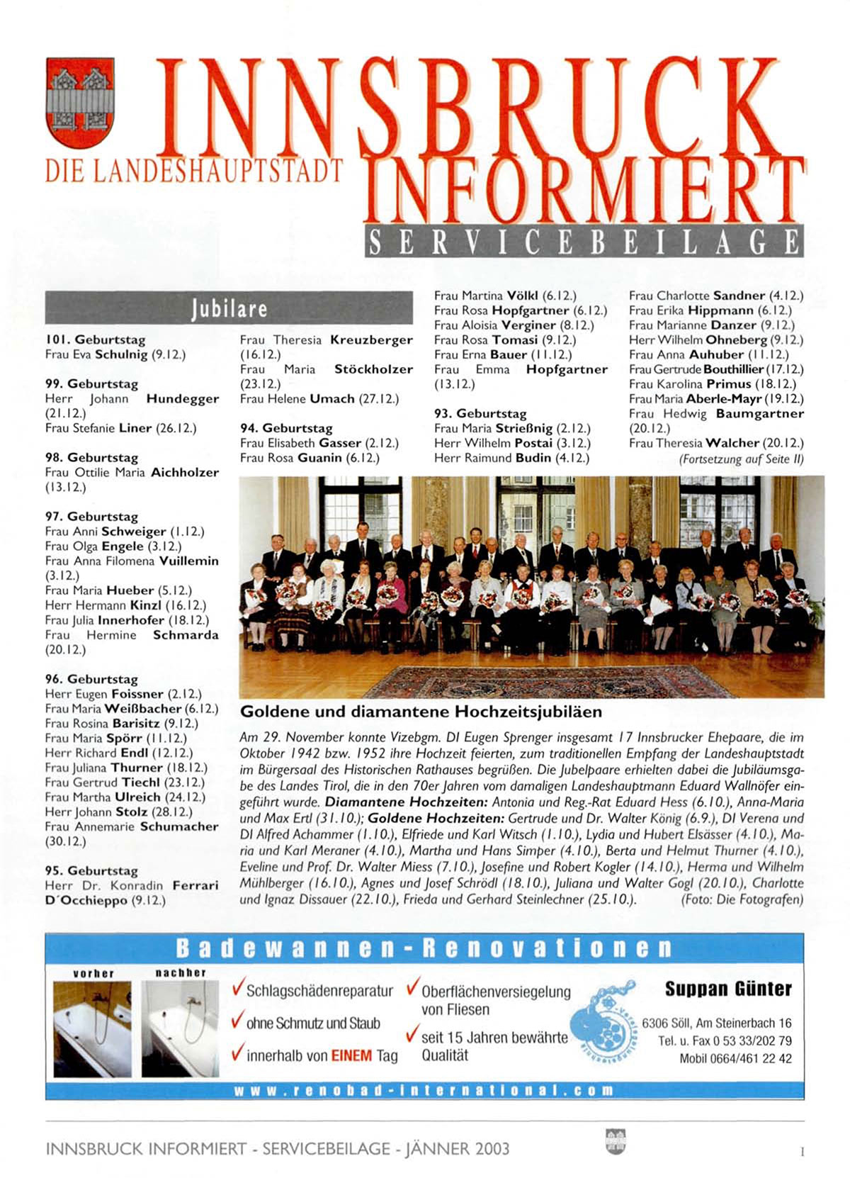 INNSBRUCK INFORMIERT - SERVICEBEILAGE -JÄNNER 2003