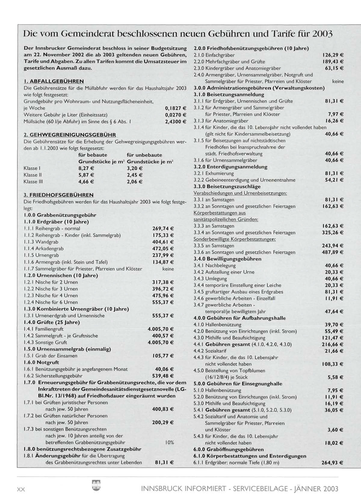 INNSBRUCK INFORMIERT - SERVICEBEILAGE - JÄNNER 2003