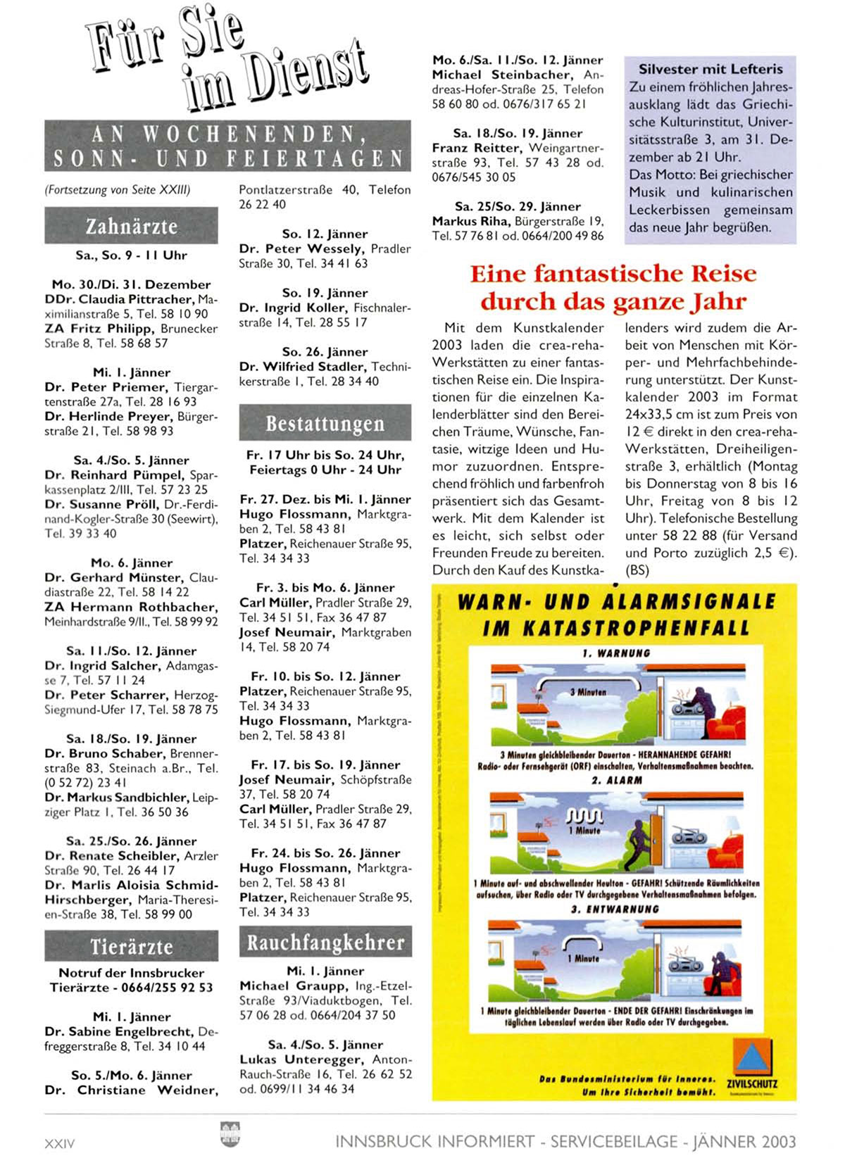 INNSBRUCK INFORMIERT - SERVICEBEILAGE -JÄNNER 2003