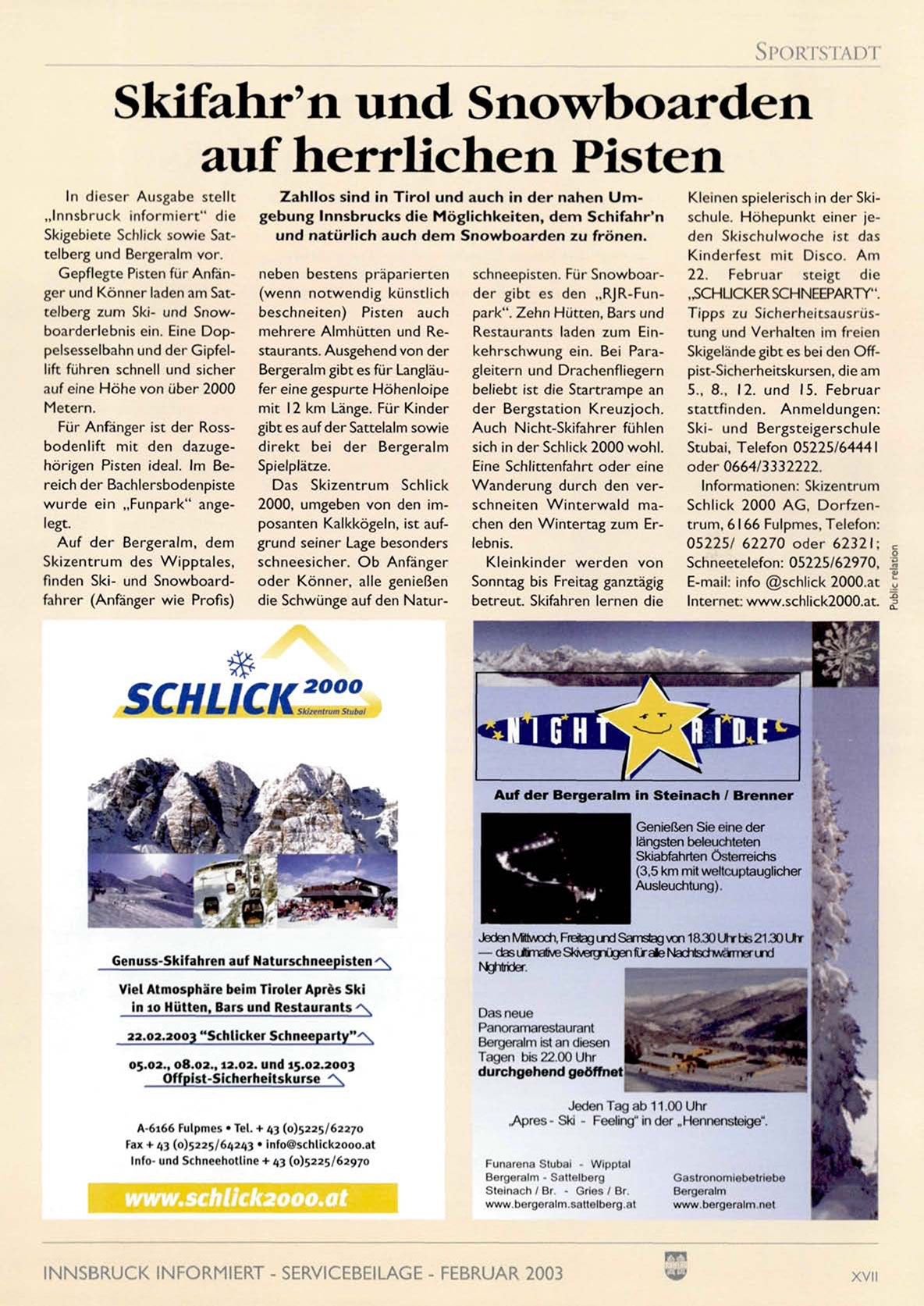 INNSBRUCK INFORMIERT - SERVICEBEILAGE - FEBRUAR 2003