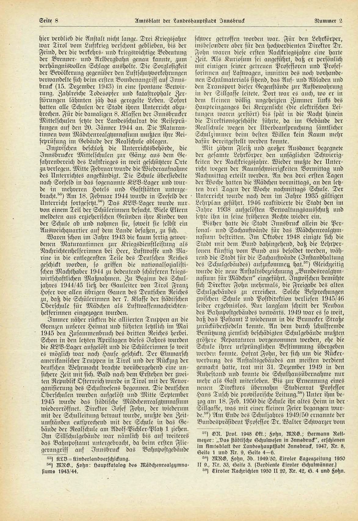 in, Nnttsblatt der Landeslicniptsladt Innslirnck, 1947, Rr. 8,
