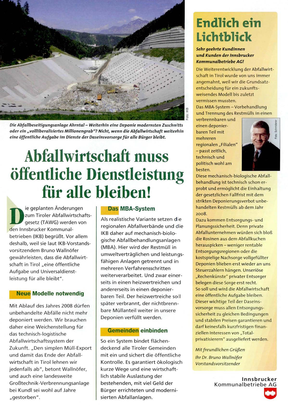 gewährleisten, dass die Abfallwirtschaft in Tirol „eine öffentliche