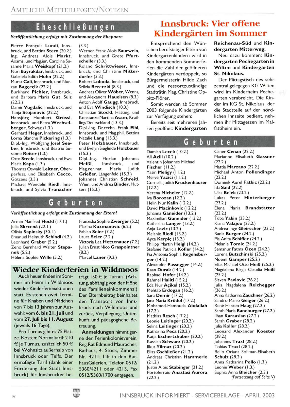 INNSBRUCK INFORMIERT - SERVICEBEILAGE - APRIL 2003