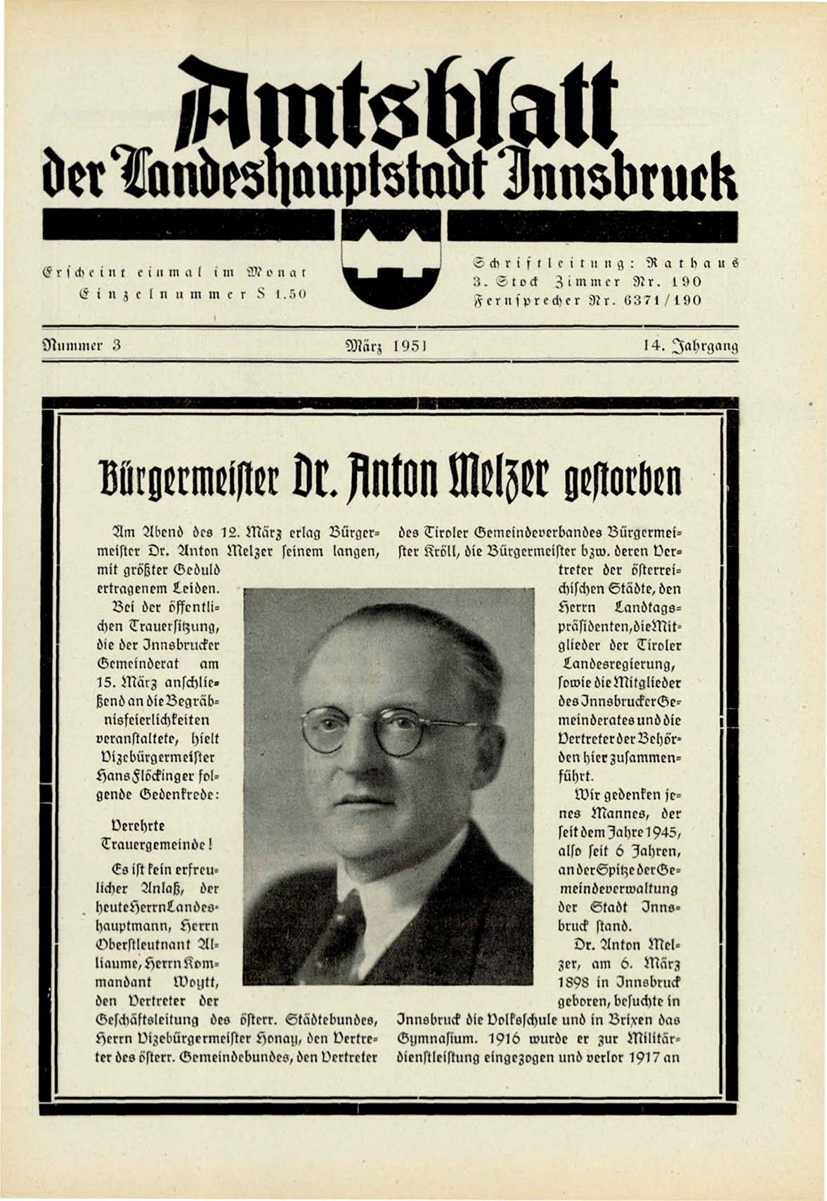 Am Abend des 12. Mär^l erlag Bürgermeistcr Or. Anton Melzcr seinem langen,