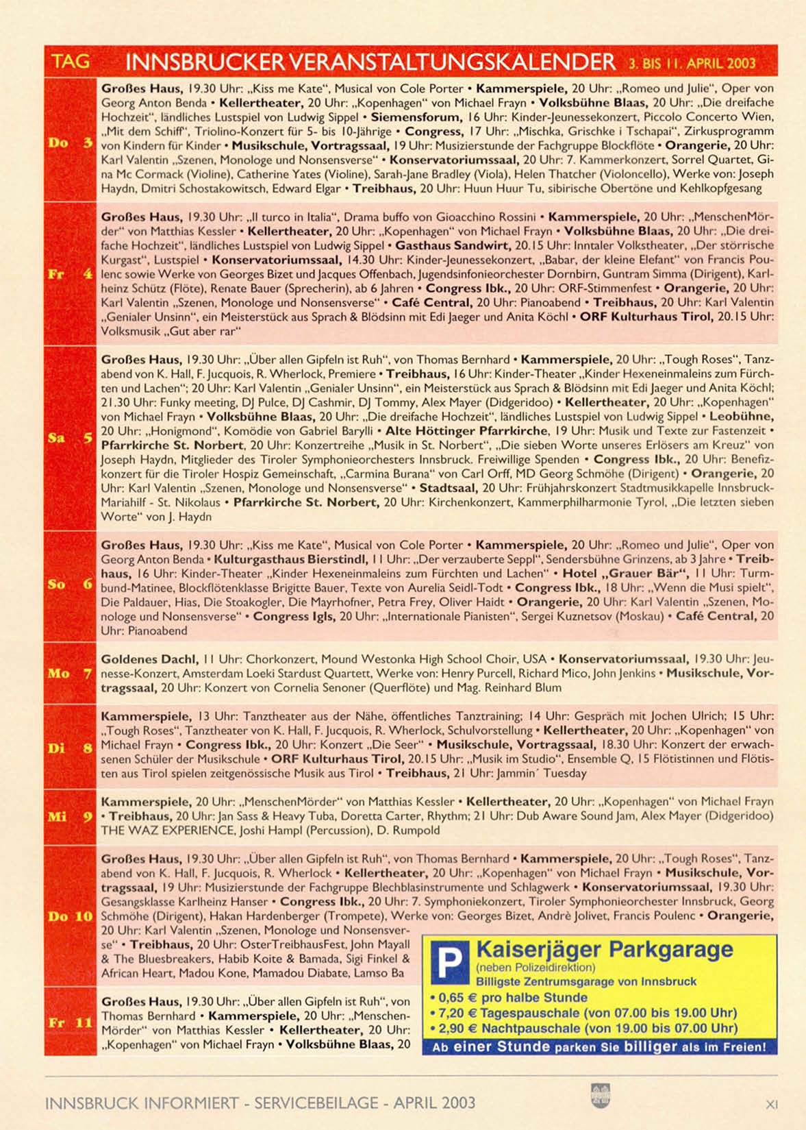 INNSBRUCKER VERANSTALTUNGSKALENDER 3. BIS 11. APRIL 2003