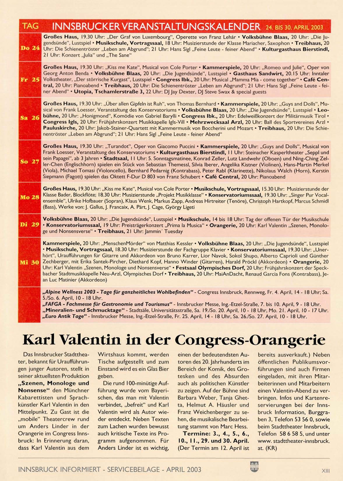 INNSBRUCK INFORMIERT - SERVICEBEILAGE - APRIL 2003