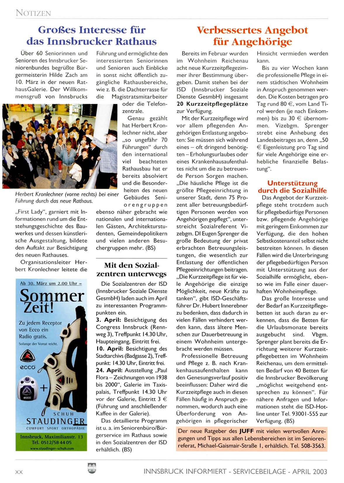 INNSBRUCK INFORMIERT - SERVICEBEILAGE - APRIL 2003