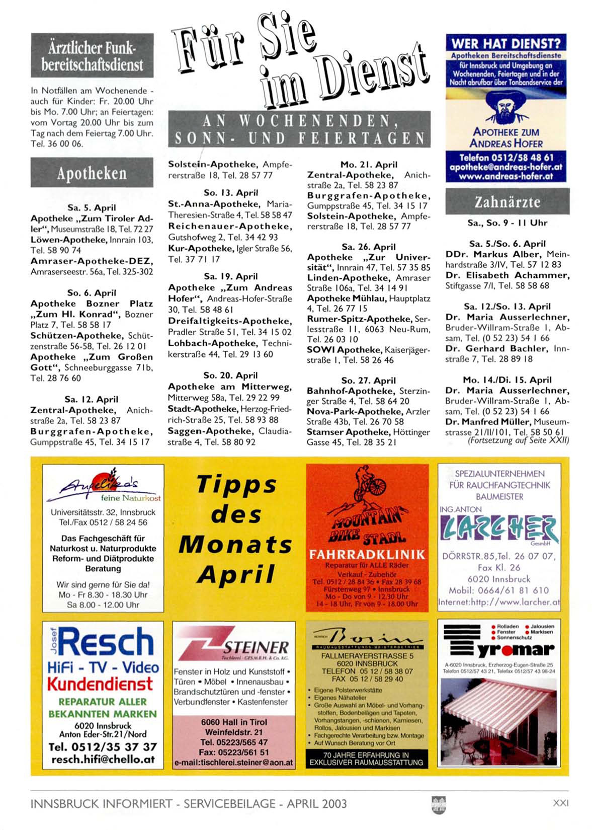 INNSBRUCK INFORMIERT - SERVICEBEILAGE - APRIL 2003