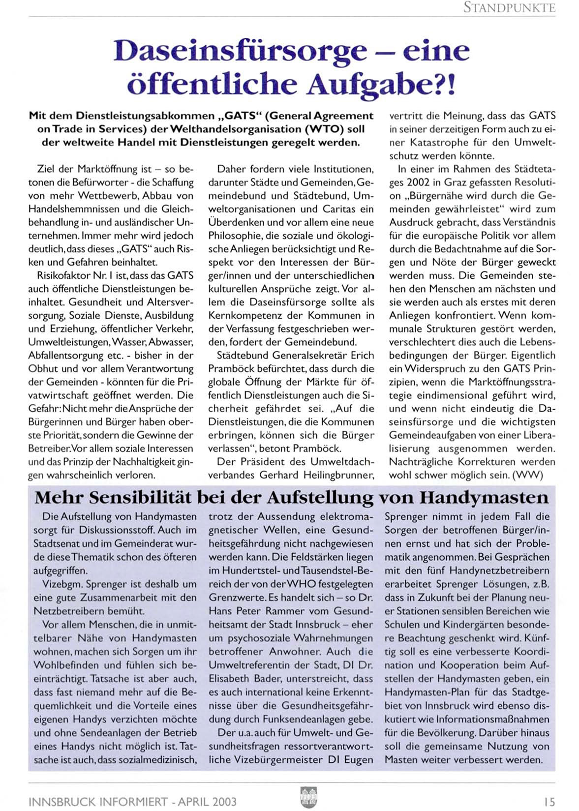 I N N S B R U C K I N F O R M I E R T - A P R I L 2003