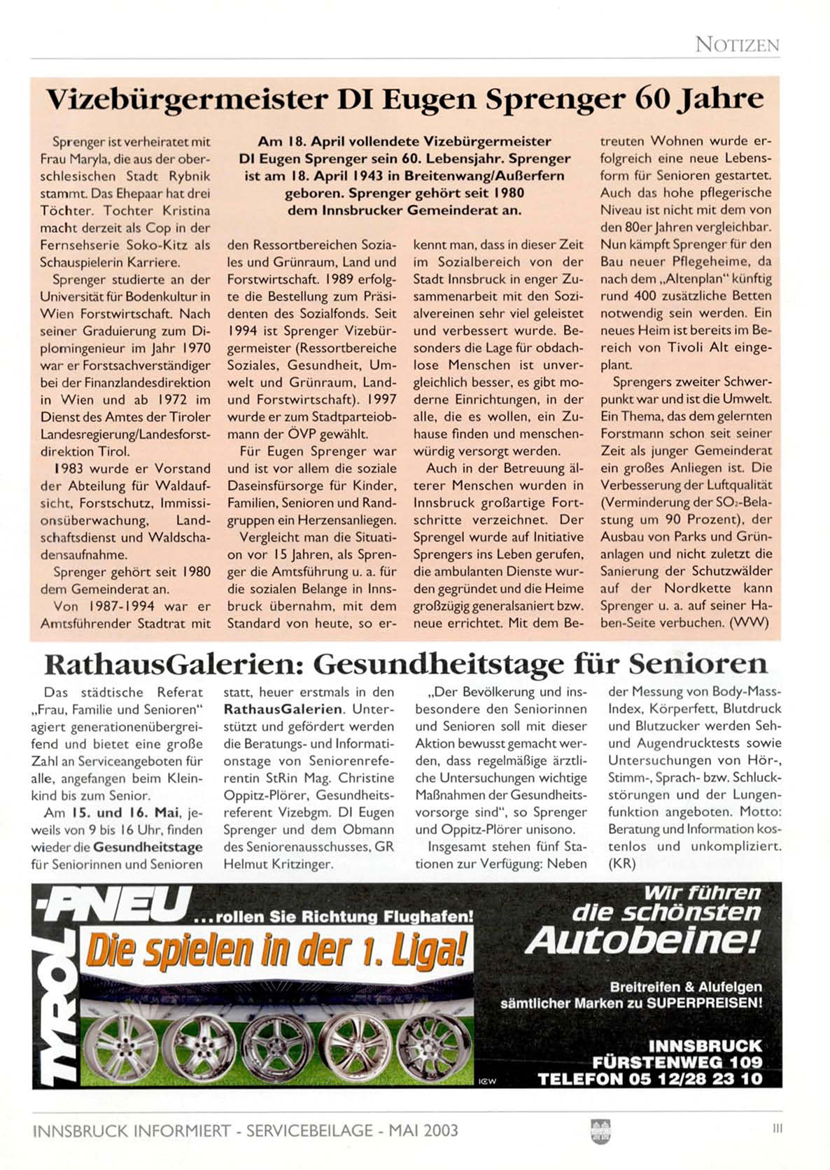 INNSBRUCK INFORMIERT - SERVICEBEILAGE - MAI 2003